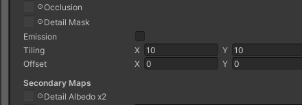 아까 만든 머티리얼의 Tiling 을 10, 10 으로 설정해준다.