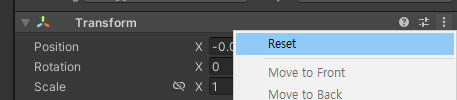Position과 Rotation이 가끔 0,0,0이 아닐때가 있는데 이럴땐 reset 시켜주면 된다.