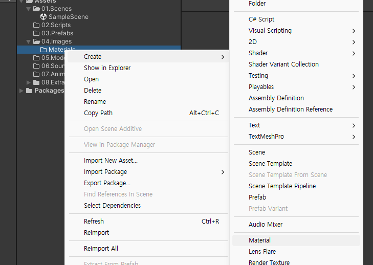 Images 파일에 Materials 폴더 생성후 Material인 Floor를 새로 생성한다.