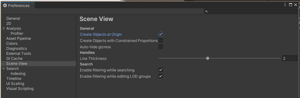 [Edit] - [Preferences] -[Scene View] - [Create Object at Origin] 옵션 체크