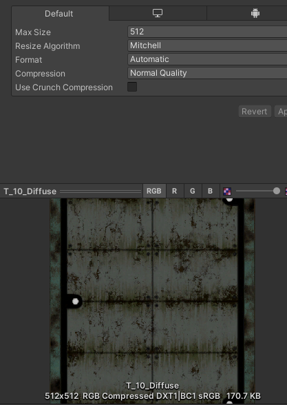 Max Size의 해상도를 512로 설정하면 170.7KB까지 줄어든 걸 확인할 수 있다.