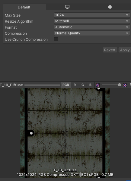모바일 플랫폼으로 출시하기 위해서는 텍스처의 해상도를 적절히 줄여야한다.