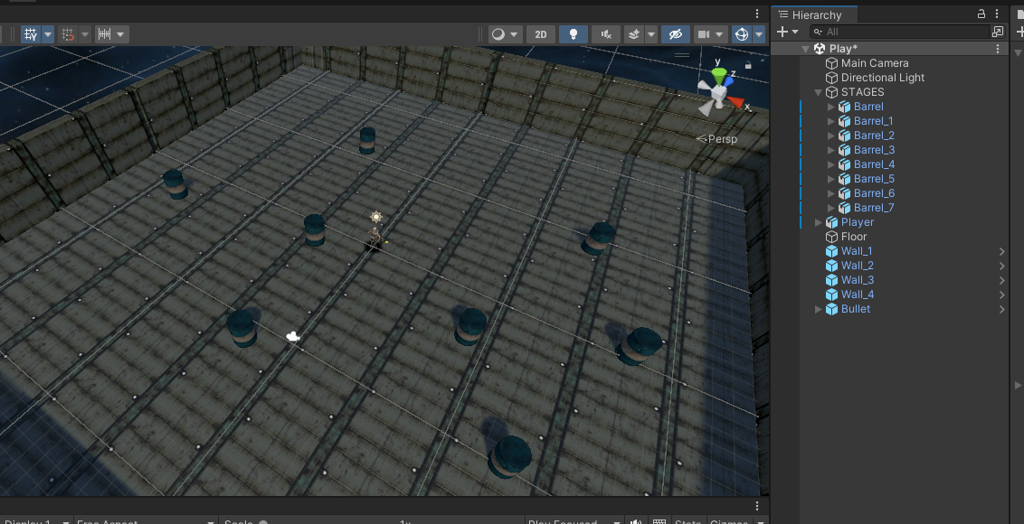 이렇게 여러개의 Barrel을 복제하고 STAGES 오브젝트의 하위로 넣어준다.