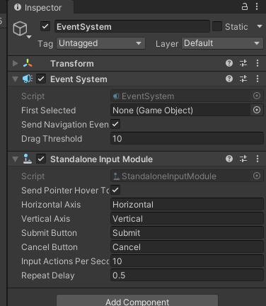 : EventSystem, Standalone Input Module 컴포넌트를 포함
