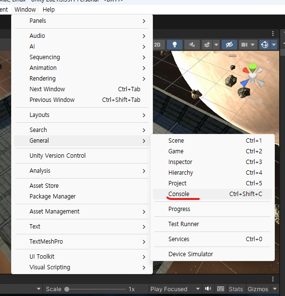 Debug.Log("출력할 문자열");