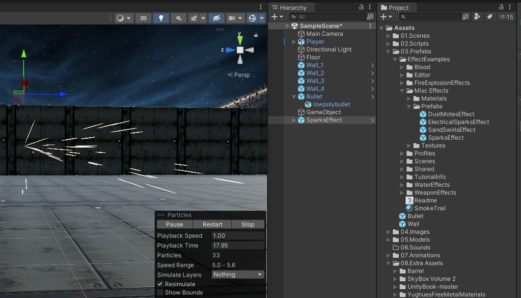 벽에 총알이 충돌했을 때 불꽃이 튀는 효과 구현하기