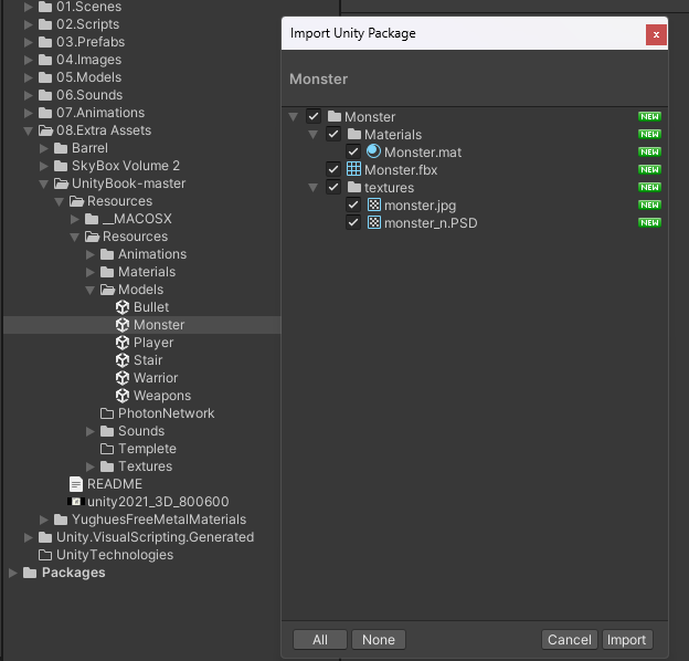몬스터의 fbx 파일을 넣어 적용해보면 미리보기로 확인할 수 있다.