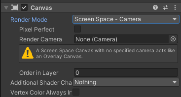 씬의 가장 상위 UI 항목이 표시되는 Screen Space - Overlay 옵션과 동일하지만