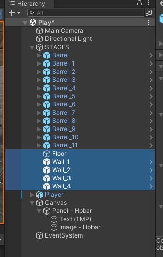 STAGES에 Floor, Wall를 모두 넣어서 차일드화 한다.