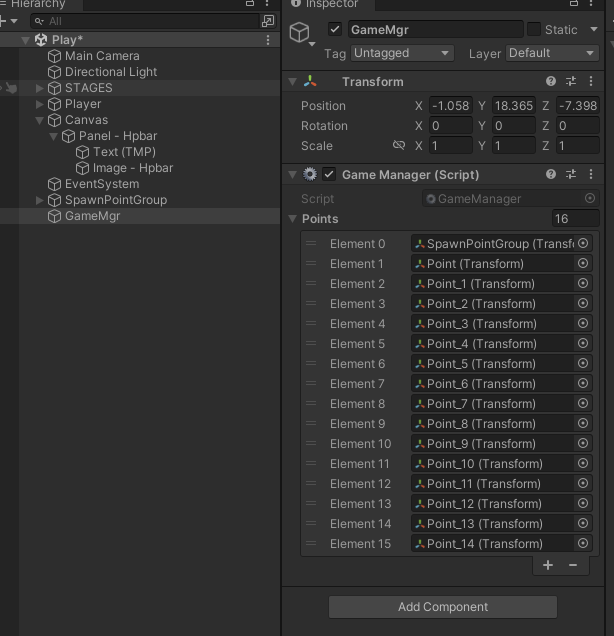 point 위치에서 적 캐릭터를 생성할 게임 매니저를 제작
