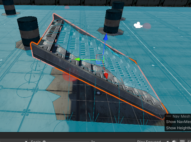 이와 같이 동적으로 변경되는 장애물에 NavMeshObstacle 컴포넌트를 활용하면 쉽게 해결 가능