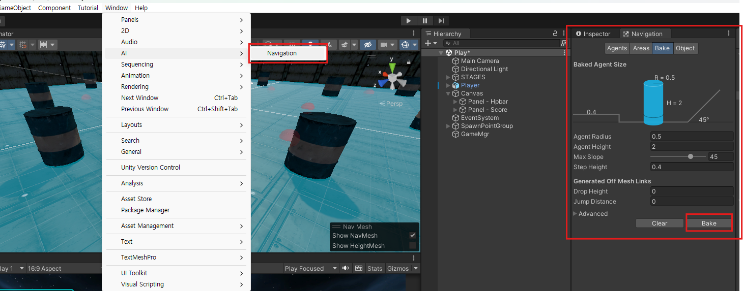 Bake 하면 계단 위도 올라갈 수 있음을 확인