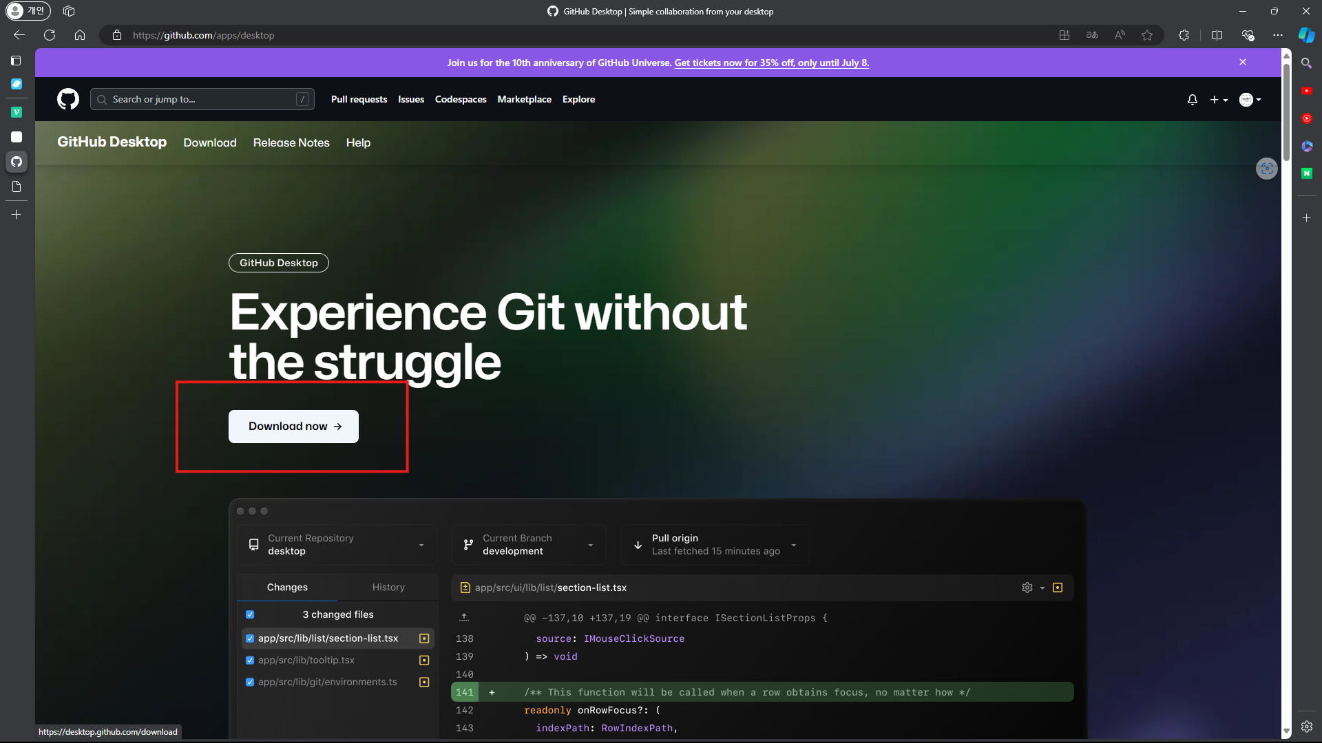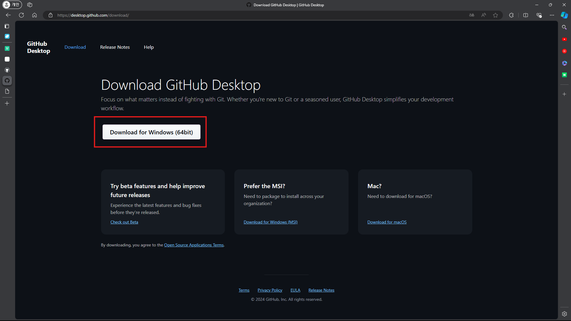 깃허브 - Desktop 다운 받는 방법, 링크
