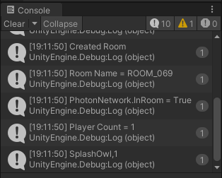 Debug.Log("Created Room");